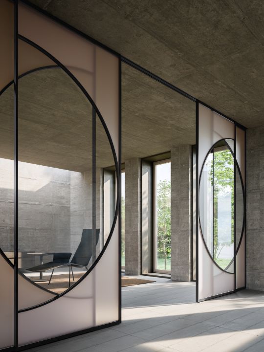 Archi is a new ADL model that inscribes the shape of the circle in the very thin aluminum perimeters that make up the frames of the glass panes. Three compositional solutions, three different interpretations of the relationship of the circle with the geometry of the connecting element: tangent to the horizontal lines, to the vertical lines or free from the lines. Each composition can be interpreted with one or more circles based on the number of doors and the design you want to bring into the architectural scene.