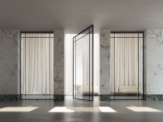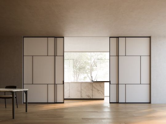 The geometric features determined by the intersections of uprights and crosspieces , also in combination with blind panels, determine three new sophisticated aesthetics.