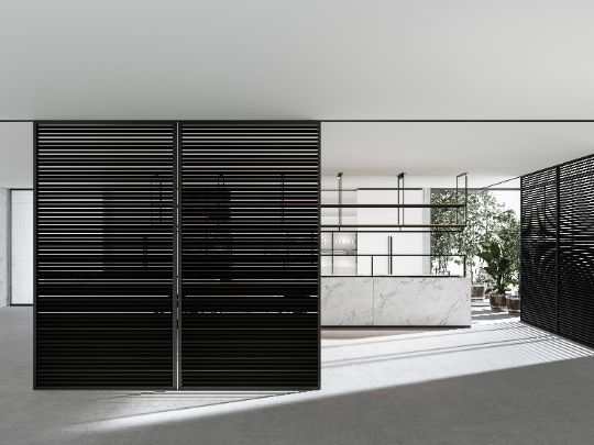Thanks to its all-aluminium conformation, Levante is the first interior door that can also be used outdoors as a windbreak and sunshade element.
