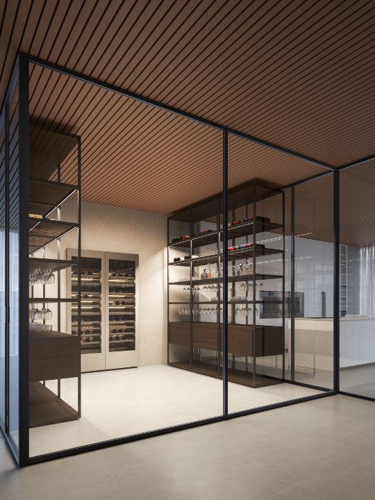 MyRoom is a system that can compartmentalize space by creating rooms through a system of framed glass panels and swing doors that allow you to divide the room with glass, maintaining a high visual connection but at the same time promoting the liveability of the space dedicated to your passions. With MyRoom it is possible to go in stylistic continuity with the main ADL space connection systems thus ensuring the unitary perception of the living space.